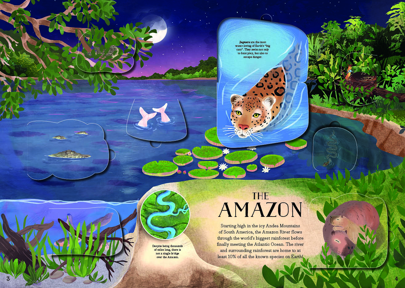 Rivers support life in their depths, on their banks, and in the sky above them. This book highlights some of the most fascinating river habitats in the world, with plenty of fun things for young readers to spot in each stunning illustration by Marc Pattenden. After spying a creature hidden in the scene, little hands can lift a flap to learn more about it, from snapping alligators in China’s Yangtze River to cute capybaras around the Amazon River.