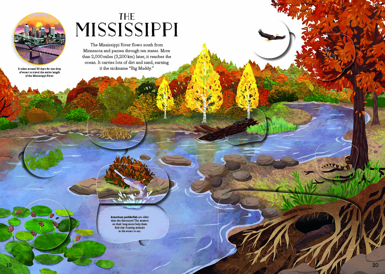 The book introduces famous rivers around the world, including the Mississippi and the otters that roam its banks, and the endangered dolphins that call the River Ganges home. Readers will also meet the birds that rely on rivers for food during their epic migrations and discover the significance of the Nile River in Ancient Egyptian mythology.